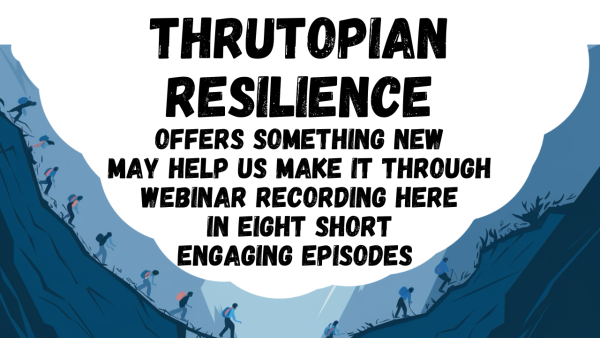 I’m pleased to now be in the tenth year of running the Resilience Practitioner Training, and this year have also had versions of this course running in Lebanon and China. While I’ve a recorded edition people can start at any time, the live webinar based version brings the added advantage of a learning community engaging in this life-enhancing work together. The next live course starts on 7th October, and follows a journey exploring practical, easy to teach resilience tools that help us deal with difficult times. This course applies a thrutopian perspective and offers a pathway to becoming a certified resilience practitioner.